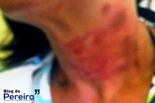 No local a vítima relatou ter sido agredida, sendo atingida por uma