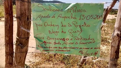 Dessa forma foi determinado pelo prefeito a suspensão da retirada de água através de carro pipa para que essa água seja utilizada pela população urbana já que a rural é abastecida pela operação pipa, e muitos berrerinhos ainda tem água para consumo animal.