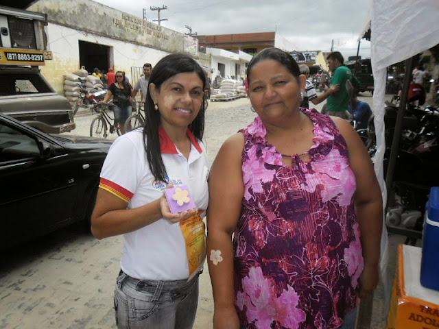proximidades do Mercado Público Municipal para carimbar a população em uma ação que marcou o Dia Nacional de