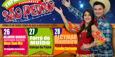 Forró do Muído e Alcymar Monteiro no São Pedro de Tuparetama. Veja grade completa de atrações.