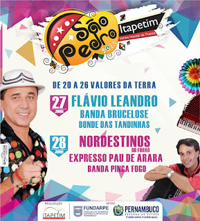 Foi confirmada na tarde desta quarta-feira 17.06 a programação oficial da festa do padroeiro São Pedro-2015 em Itapetim-PE.