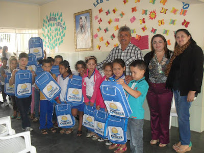 semestre letivo, realizou a entrega do uniforme e mochila escolar a todos os