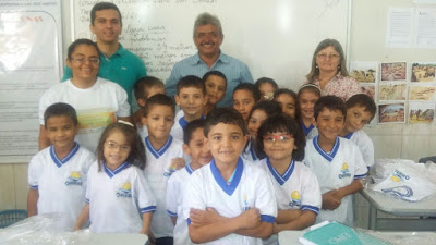 Júnior, Gestora da Escola Veríssima D’arc Aparecida Araújo, Professora Claudia Leite e alunos do 2º Ano E.F.