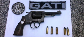 tactical, 01 (um) cabo de madeira para revolver e 01 (um) capu de pano,