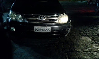Hillux 4×4 SRV, cor preta, ano 2005, placa HZS 0555, que vinha logo
