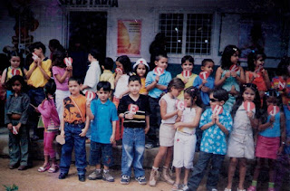 | Alunos de frente a antiga Secretaria da Escola Santa Terezinha |