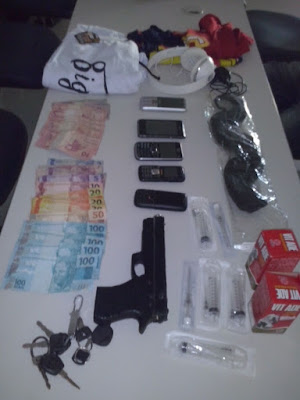 foram conduzidos juntamente com todo material apreendido e a quantia em
