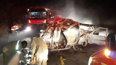 carbonizados. O caso lembra o choque um ônibus escolar e um Fiat, que