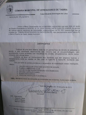 Cadê os Quebra Molas? Câmara de tabira não é atendida pelo DER-PE.