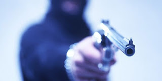 dois meliante, um deles armado com uma arma curta e de capacetes entraram