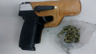 arma de fogo, e em seu bolso uma porção de entorpecente conhecida como