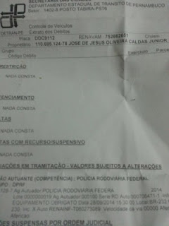 DETRAN-PE, onde como proprietário do carro citado aparece José de Jesus