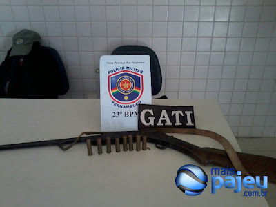 indicando o local, sendo apreendido uma espingarda cal.28, Marca Rossi,