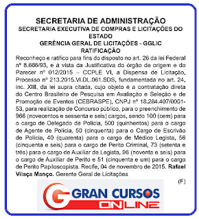 É definido organizador do concurso da PCPE. São 966 vagas ofertadas e salários que chegam a12 mil reais.