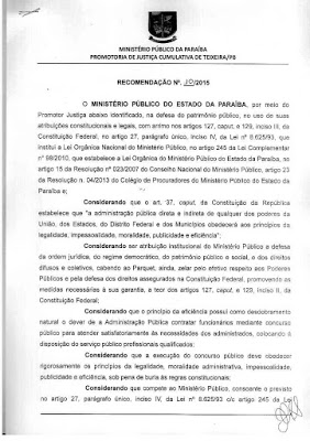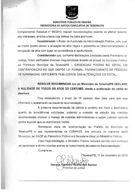 Concurso Público realizado em Teixeira-PB. O Ministério Público, por meio do