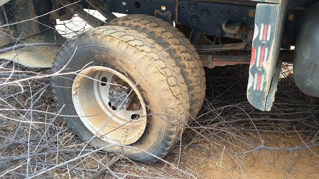 informações da Polícia Militar um dos pneus do caminhão ‘pau de arara’