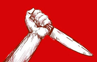que a vítima estava em sua casa quando o imputado chegou com uma faca