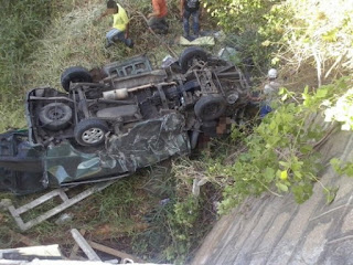 dele. Com o impacto, a van foi lançada para fora da ponte.