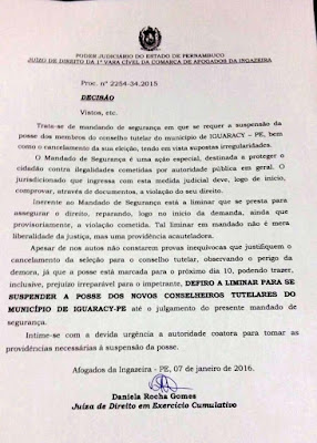 liminar para suspender a posse dos novos conselheiros tutelares do