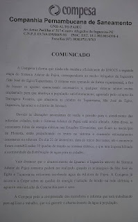 comunicado enviado ao blog, a Compesa informou que ainda não recebeu