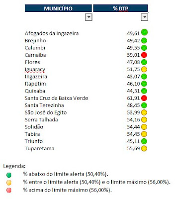 Verde, ficaram acima do limite máximo. Santa Terezinha com 48,45, Afogados da Ingazeira, Brejinho,