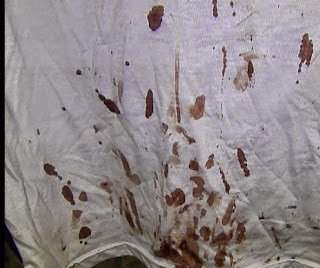 facão oxidável, sementes de maconha e uma camisa ensanguentada. Diante