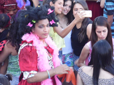 Isabel e pessoas de todas as idades participam de uma forma irônica, de