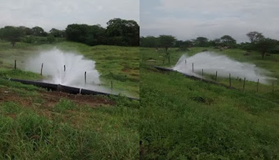 Na manhã deste domingo (14), o senhor José Ermany flagrou a Adutora do Pajeú novamente estourada, no Sertão do Pajeú. O rompimento da adutora desperdiça água à aproximadamente 5 Km após Carnaíba, sentido Afogados da Ingazeira, na PE-320.