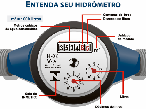 como relógio, o hidrômetro é o instrumento que faz a medição do consumo