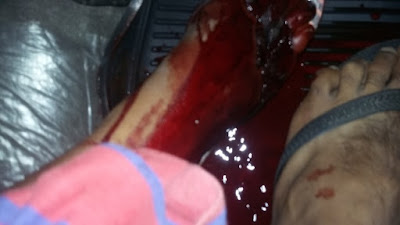 atingida na perna direita, causando um ferimento profundo provocando grande perda