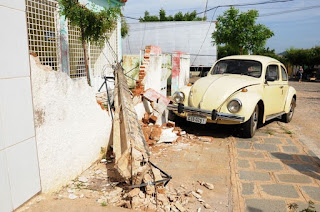 Energia Energisa foram arrancados, um muro ficou destruído, um veículo