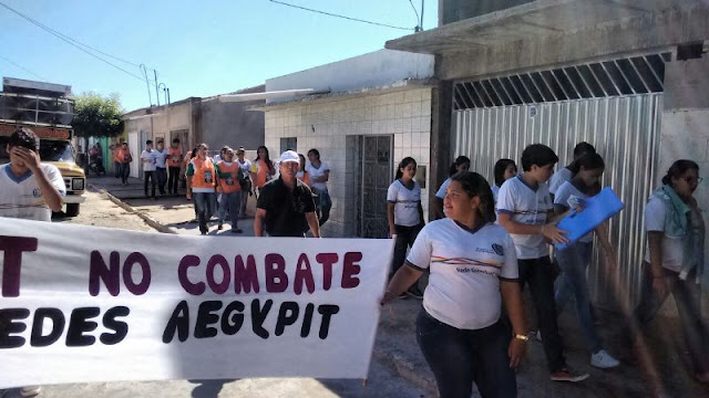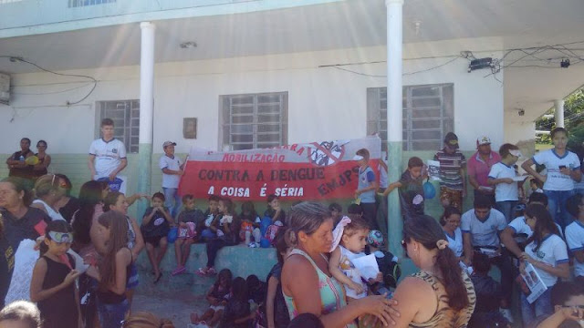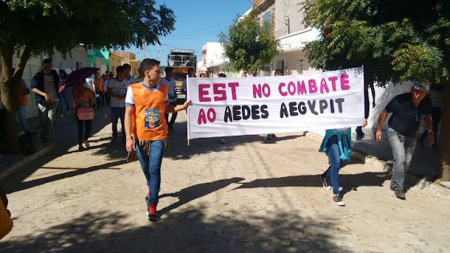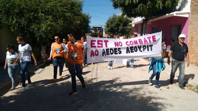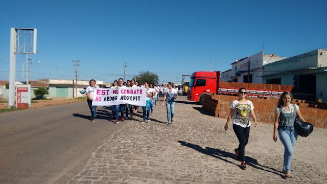 Em Santa Terezinha, o combate ao Aedes Aegypti é constante e a mobilização da sociedade contou na manhã desta sexta-feira 08.04 com o apoio dos alunos das escolas José Paulino de Siqueira e da EREM Santa Terezinha, também de moradores e das equipes municipais da Secretaria de Saúde. Os estudantes se concentraram no UBS do Bairro José Luiz/Novo Virgulino e com faixas, panfletos e carro de som percorreram as principais ruas da cidade até a sede da Prefeitura e Câmara de Vereadores onde ouviram discursos e o papel que cada um tem no combate ao principal vetor das doenças que vem deixando muitos enfermos dentro do município.