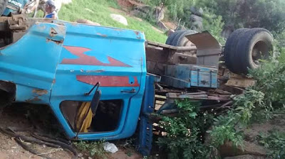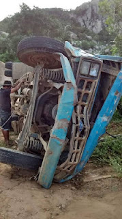 Caminhão capota na zona rural de Quixaba. Fotos!
