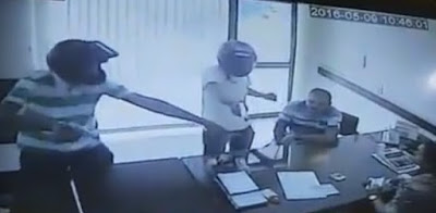 indivíduos entraram dentro da sala do mesmo, ambos com capacete, e