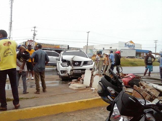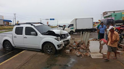 do Nissan Frantier, perdeu o controle da direção e bateu na mureta de