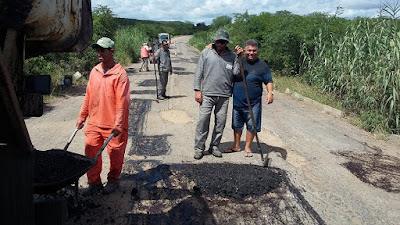 Foi reiniciada nesta terça-feira a operação tapa buracos na PE 285 que liga Santa Terezinha a Riacho do Meio. Os trabalhos que haviam começado no fim do mês de março ficaram parados e concluídos até as proximidades do Sítio Canta Galo, antes da Vila do Tigre. A equipe do DER do governo do estado chegou ontem 10.05 para fazer os serviços do trecho onde pararam até a sede do município. O trecho onde a buraqueira é maior fica perto da entrada da Vila do Tigre e de frente a Barragem do Cascudo, (vista do asfalto).