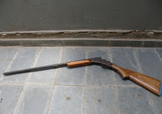 também falecido, havia uma espingarda, marca choque, cal 28, numeração
