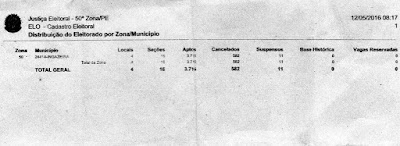 Eleitoral de Pernambuco emitiu no ultimo dia 12 de maio de 2016, um