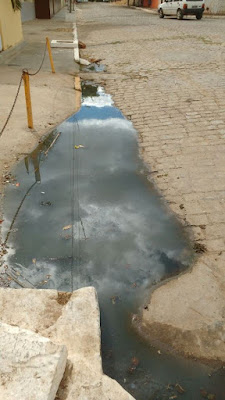 fotos constatam que, devido ao vazamento, a rua fica tomada de água