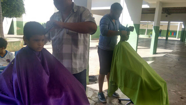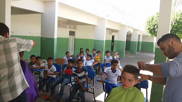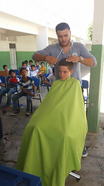 Nesta quinta feira 02.06 os alunos da escola José Paulino de Siqueira em Santa Terezinha foram contemplados com cortes de cabelo através de uma iniciativa louvável do cabeleireiro Evangelista e do seu filho, onde ambos desenvolvem ações voluntárias por meio de um projeto intitulado: “AJUDAR FAZ BEM” com o apoio da professora Mariza. Outra professora, Shisley Patrícia pelas Redes Sociais parabenizou em nome da José Paulino de Siqueira os profissionais pela belíssima iniciativa.