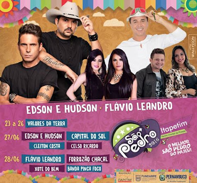 São Pedro de Itapetim terá dupla sertaneja Edson e Hudson. Veja grade completa.