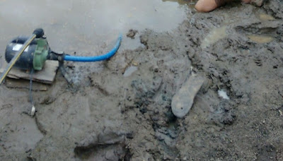 manuseava uma Bomba d’água a beira de um açude. O corpo da vitima