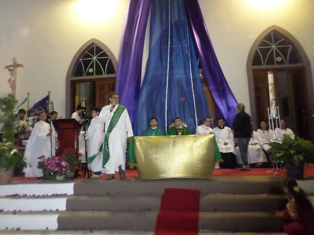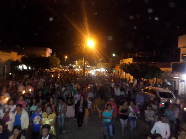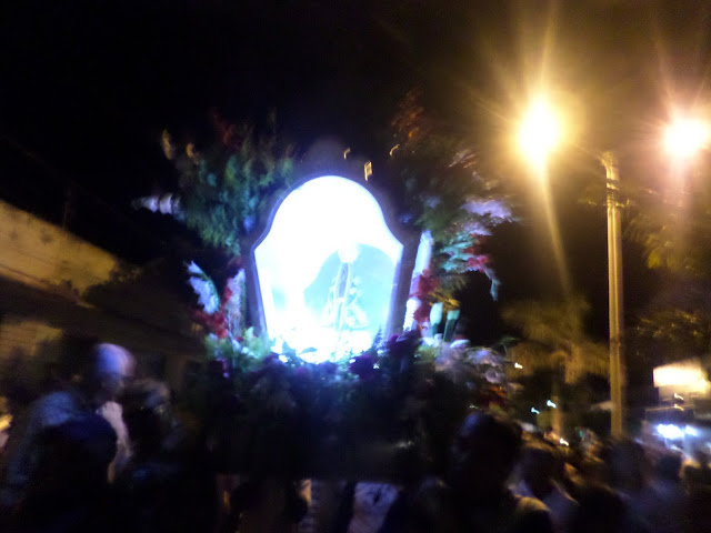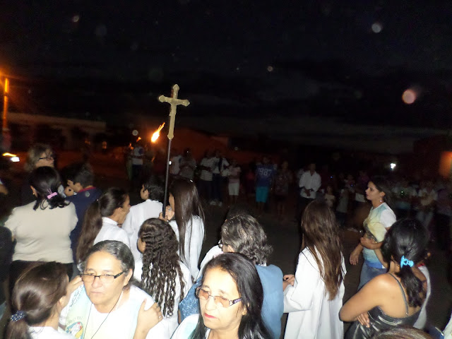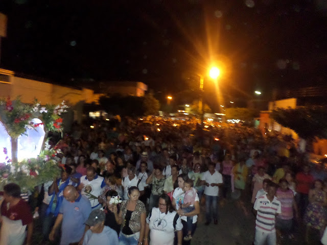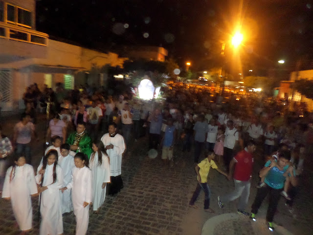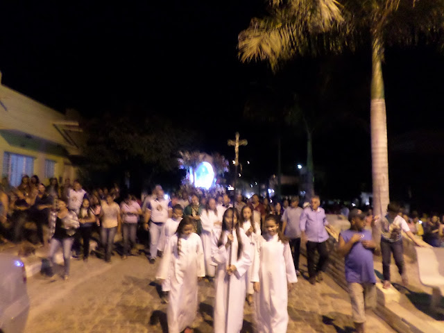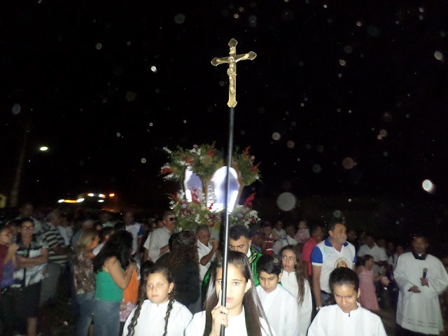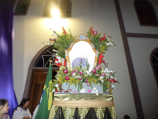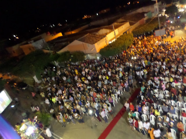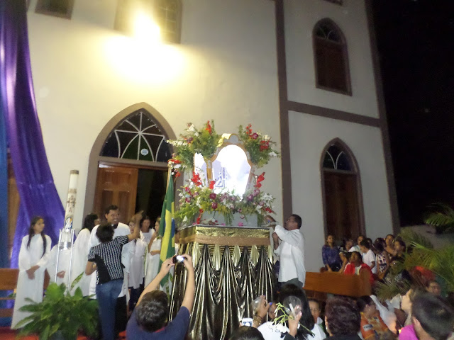 a acolhida da imagem, foi feita uma procissão até o pátio da Igreja