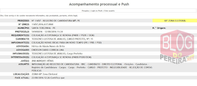de Santa Terezinha pela Coligação ‘A Esperança se Renova’, alegando