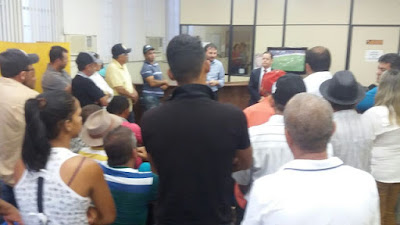 de Justiça Aurinilton Leão e Lúcio Luiz de Almeida Neto coordenaram reunião com os marchantes de Santa Terezinha para debater o abate de animais e a venda de carne que acontecia sem atender