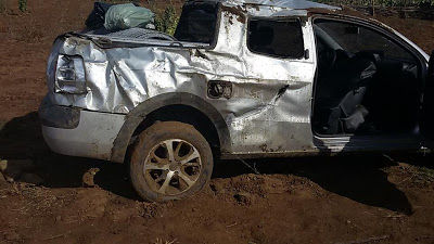 do carro, um Fiat Strada, e sai fora da pista. Vinha com o padre Seu