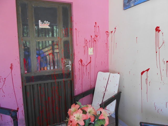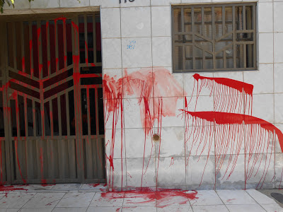 Ato de vandalismo. Desocupado jogou tinta óleo nas paredes, nas portas e