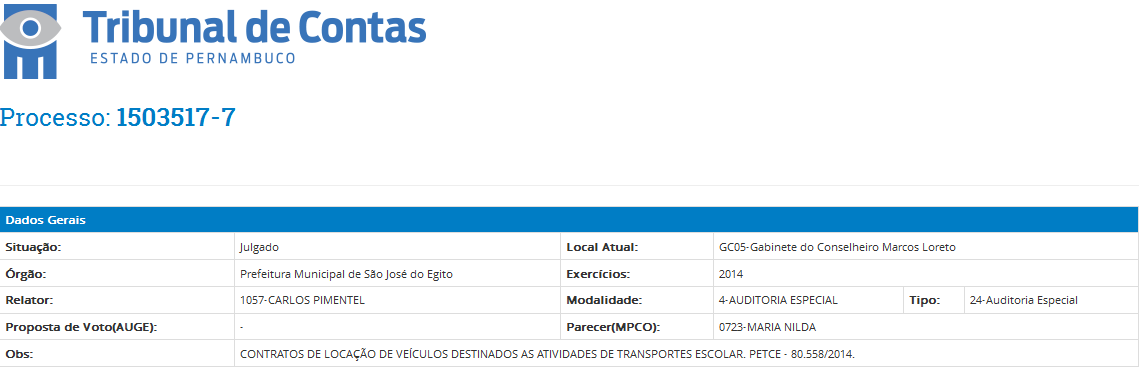 Estado de Pernambuco – TCE/PE na manhã desta quarta-feira (14/09/2016),