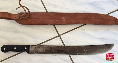 dona de casa, relatou ao policiamento que o dono da casa atingida pela bomba caseira chegou a sua residência com um facão