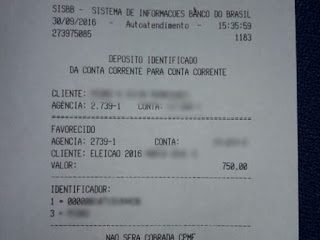 quantia doada foi de R$ 750. Já o diretório do Partido Democrático